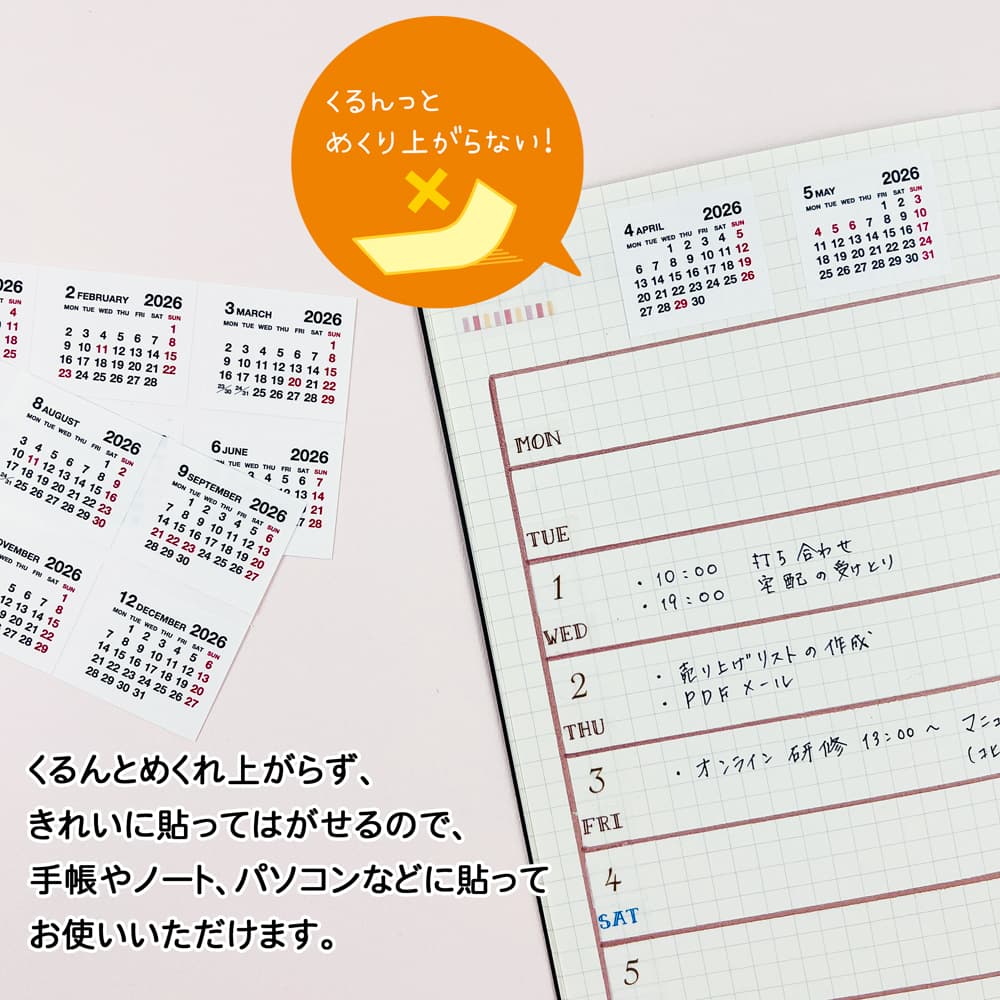 【公式】2026 ふせんカレンダーSサイズ・月曜日始まり