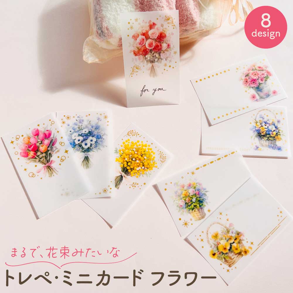トレぺミニカード・フラワー ミニカード メッセージカード グリーティングカード プレゼント ギフト 花柄 花 おしゃれ かわいい 可愛い 雑貨 文房具 文具 パインブック PINEBOOK