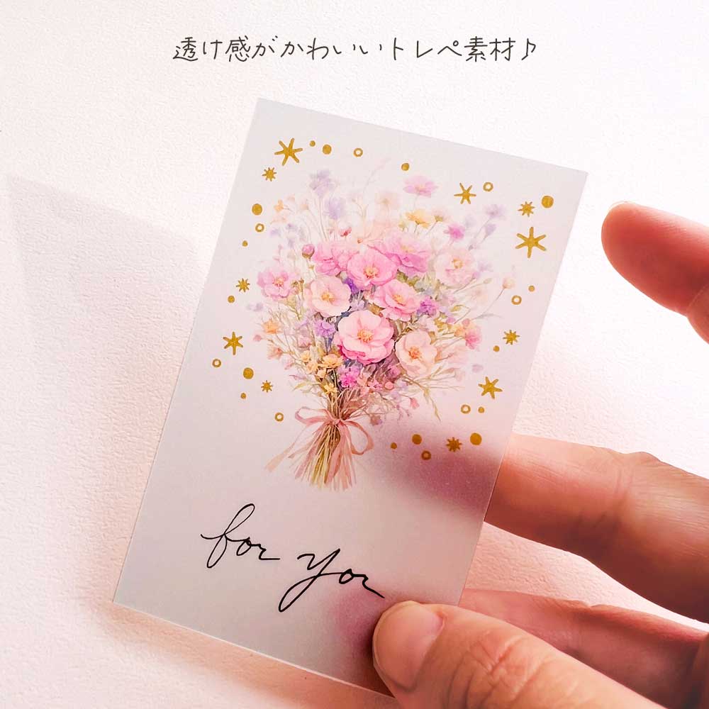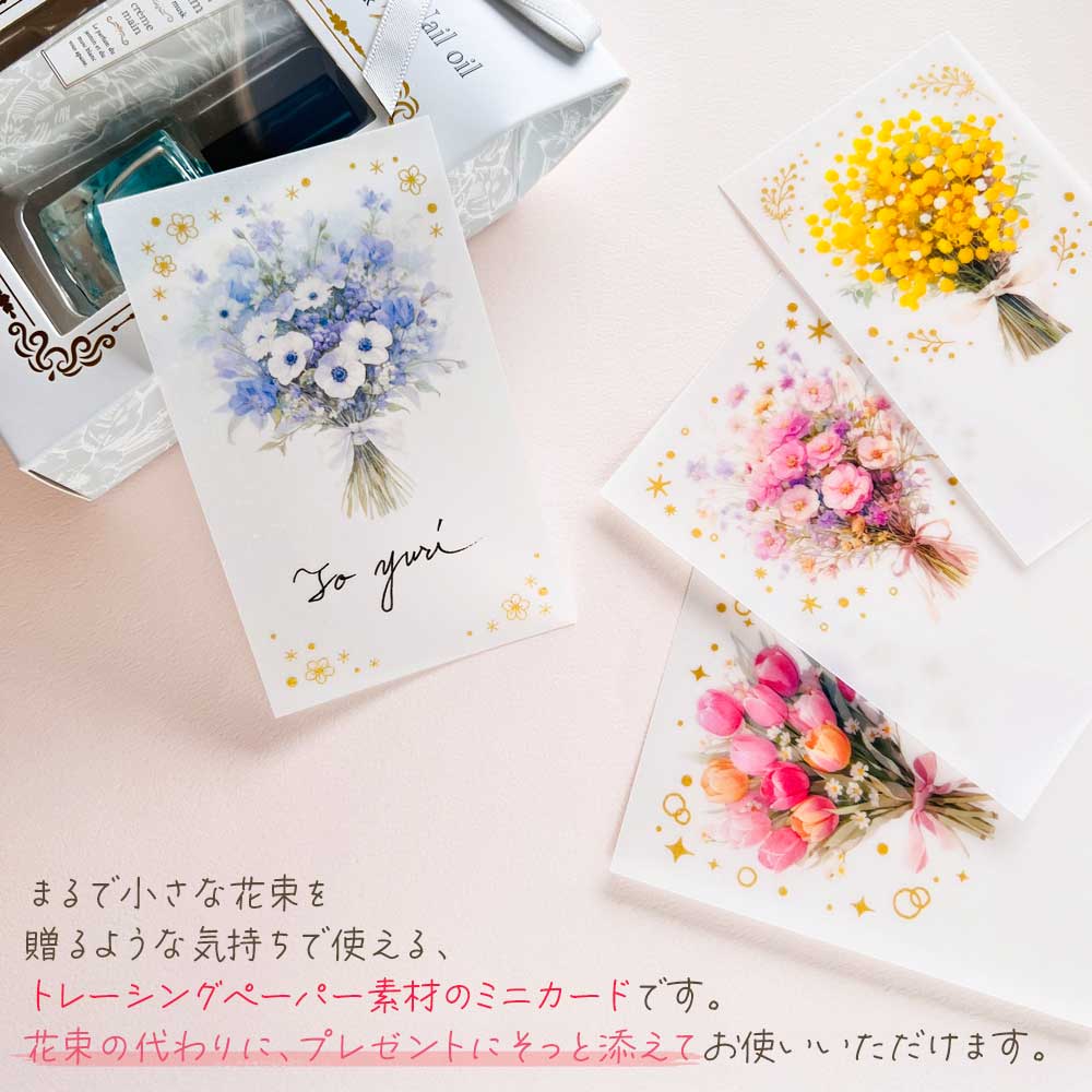 まるで小さな花束を贈るような気持ちで使える、透け感がかわいいトレーシングペーパー素材のミニカードです。