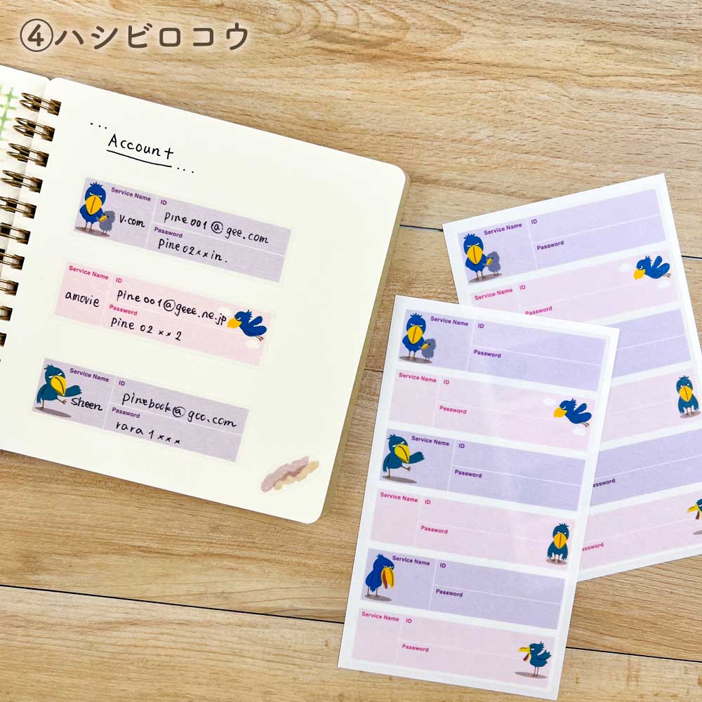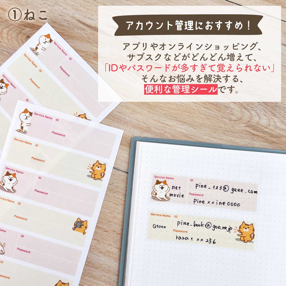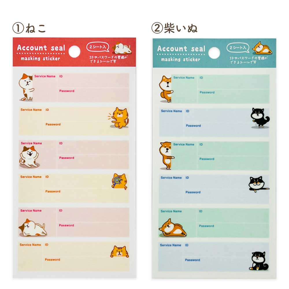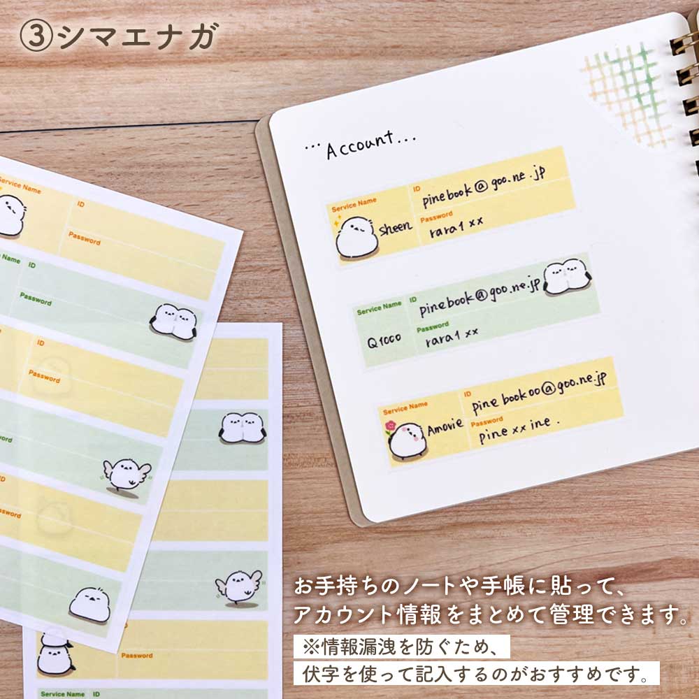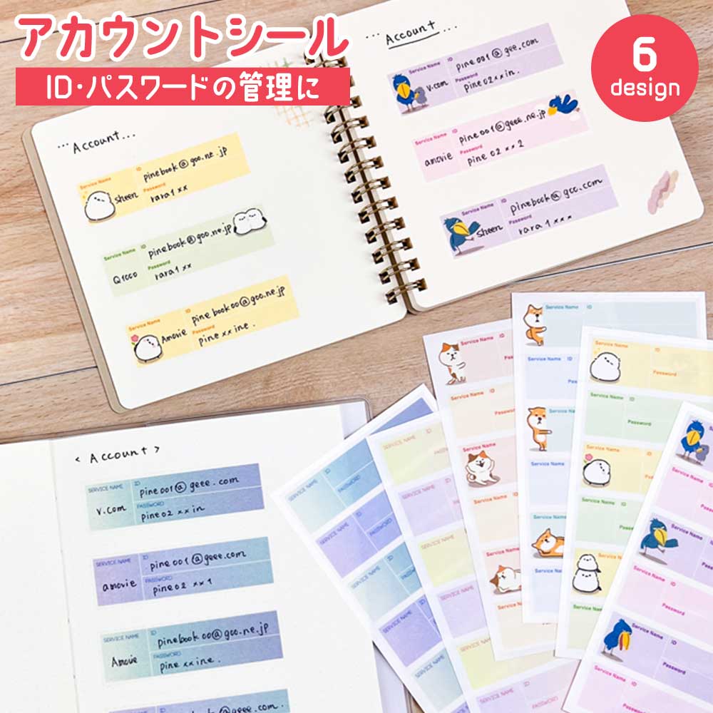 マスキングシール・アカウント パスワード アカウント管理 シンプル 手帳 ノート ID 文具 雑貨 便利 おしゃれ かわいい 猫 ねこ ネコ 柴犬 犬 シマエナガ ハシビロコウ キャラクター パインブック PINEBOOK