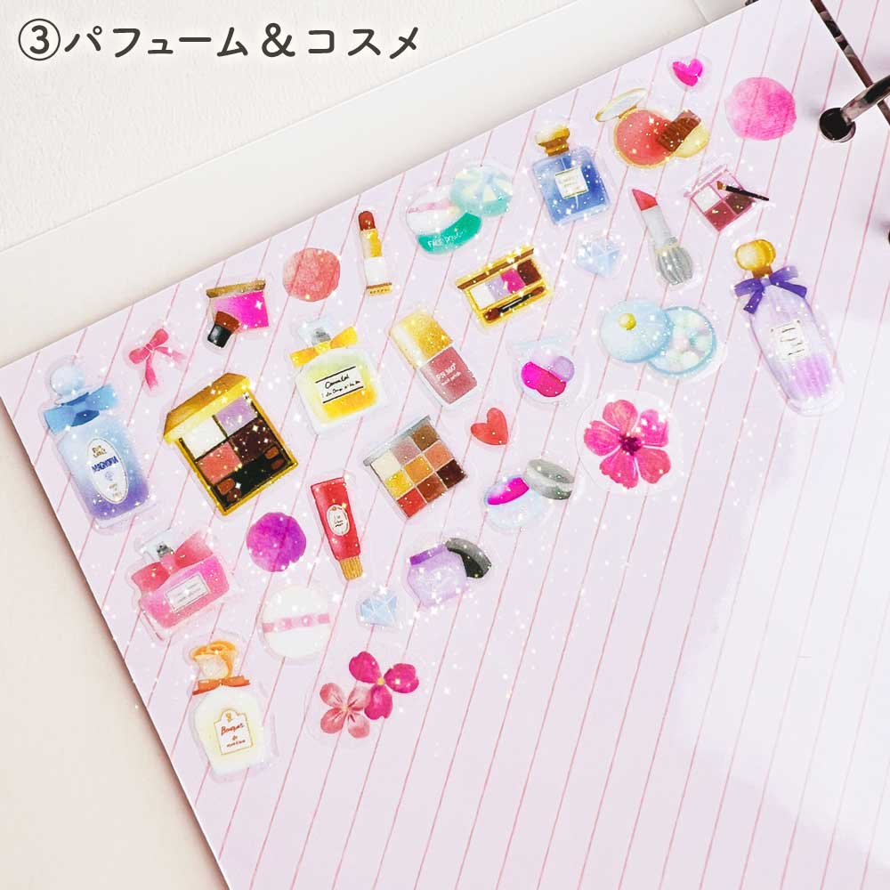 ぷくキラシール カフェ フラワー コスメ 楽器 フルーツ 立体 ぷっくり クリア 雑貨 文房具 文具 かわいい おしゃれ キラキラ 可愛い パインブック PINEBOOK