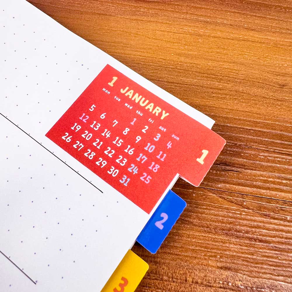 インデックス部分を折り返して2重にし、カレンダーが欲しいページに貼るだけ。
